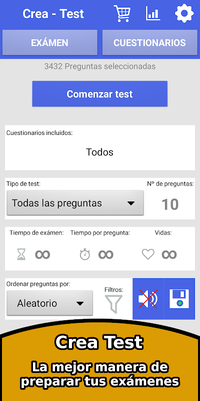 "ٹیسٹ بنائیں" آپ کے امتحانات کو حسب ضرورت بنانے کے لیے ڈیزائن کیا گیا ہے۔ مثال کے طور پر، تاکہ یہ آپ سے صرف وہی سوالات پوچھے جو آپ ناکام ہو گئے ہیں، (وہ جو آپ نے ابھی تک نہیں سیکھے ہیں)۔