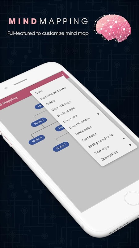 Create Mind Map - Mind Mapping for Study is the best brainstorming application on Android help you easy draw mind maps. Create Mind Map is a powerful tool for you to develop anything from a simple bucket list to a technically savvy concept. The application includes dozens of layouts, color combinations, shapes, patterns, and more. Once your map is complete, you can also share your mind map with friends and colleagues or upload it to an image, PDF, text or XML file.