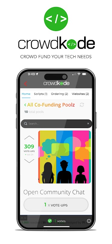 کراؤڈ کوڈ: کراؤڈ فنڈ تکنیکی ضروریات، پہلے سے تیار کردہ حل تک رسائی، وقت اور پیسے کی بچت