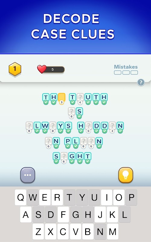 cryptograms کو حل کریں، سراگ جمع کریں، مجرمانہ مقدمات کو کریک کریں، اور اسرار سے پردہ اٹھائیں۔