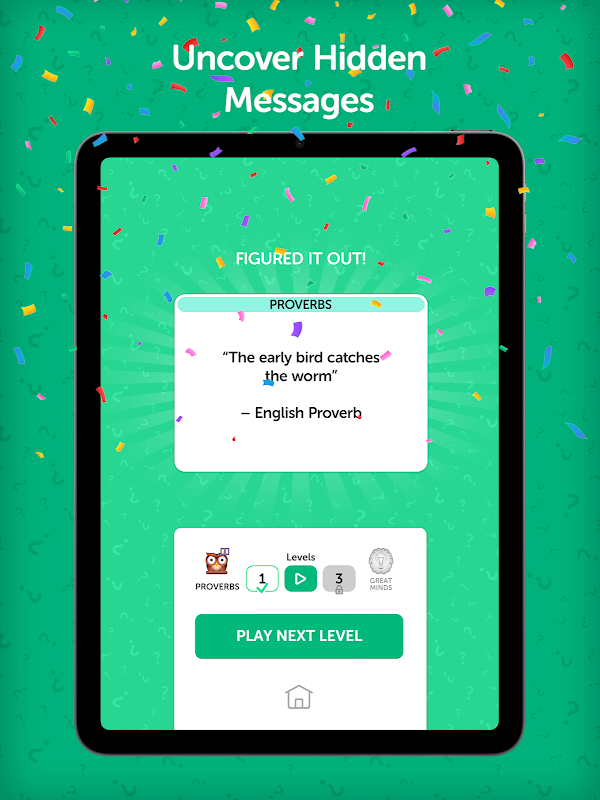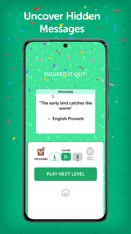 - پوشیدہ پیغامات سے پردہ اٹھائیں: چھپے ہوئے اقتباسات، کہاوتوں یا فقروں کو ظاہر کرنے کے لیے اپنی کوڈ توڑنے کی مہارت کا استعمال کریں۔ ہر حل شدہ کرپٹوگرام کامیابی کا احساس اور حکمت کا ایک نیا ٹکڑا لاتا ہے۔