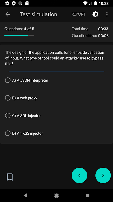 - a test simulation mode to test your knowledge in a close to real exam session environment;