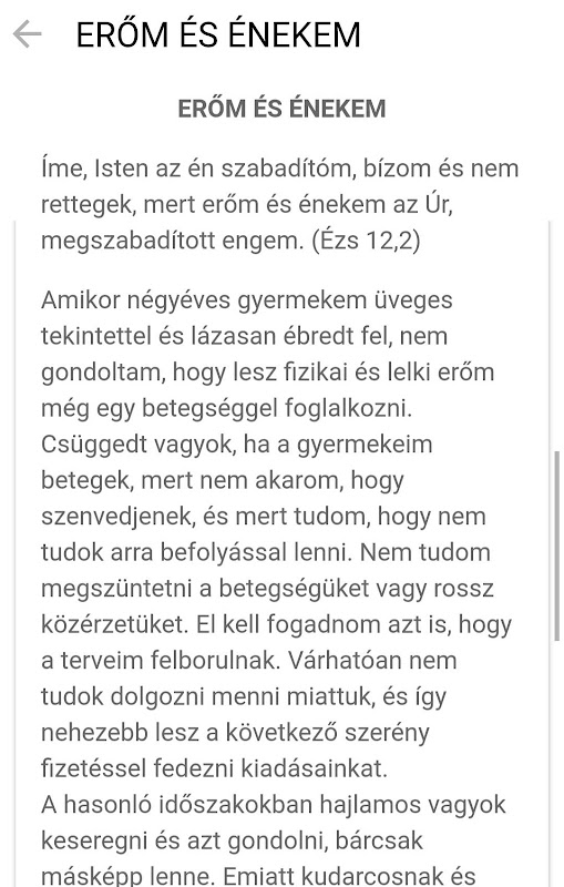 Nagy betűmérettel is jól olvasható a napi áhítat.