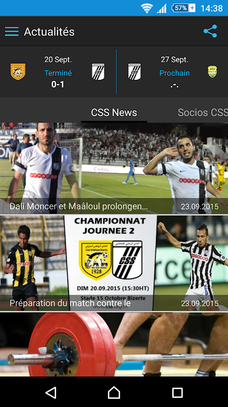 - Le suivi « Live » des matchs du CSS (score, feuille de match, actions fortes..)