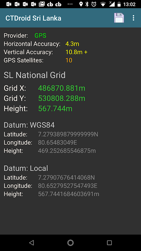 یہ آلہ GPS سینسر (یا کسی اور مقام فراہم کرنے والے) سے مقام کی معلومات تک رسائی حاصل کرے گا اور WGS84 طول البلد ، طول البلد اور اونچائی اقدار کو سری لنکا میں تبدیل کرنے کے ل coord کوآرڈینیٹ ٹرانسفارمشن انجام دے گا۔ نیشنل گرڈ کوآرڈینیٹ SLD99 یا KANDAWALA ڈیٹمز پر عمل پیرا ہے۔
