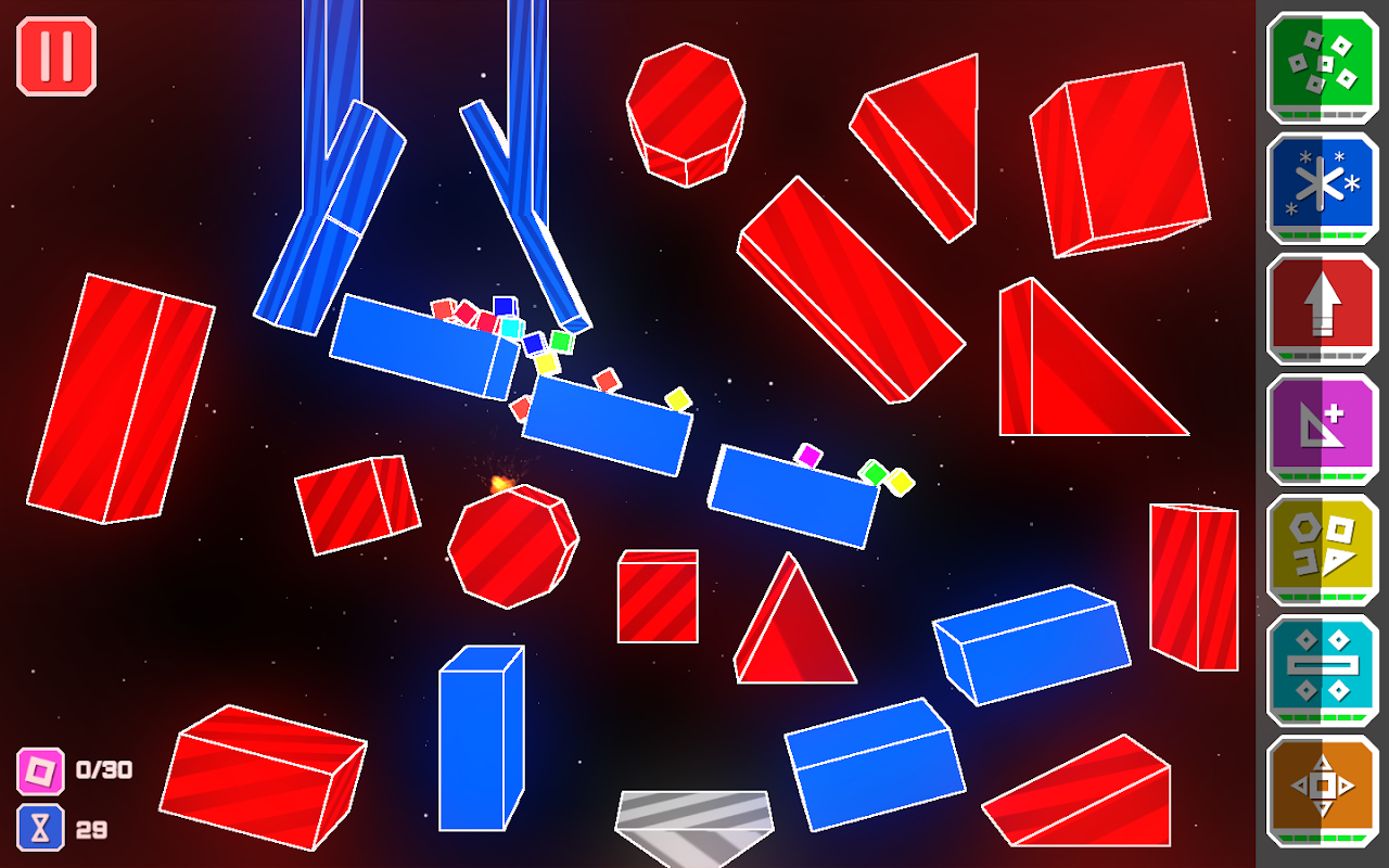 Rescue neon cubes by guiding them through intense real-time puzzles. Use the powers of bouncing, sliding, wind and teleportation while avoiding fire, empty space and tough time-limits to fullfill your destiny and become a master of physics.