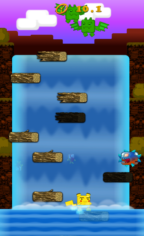 In the game and in life a balance is important. What if the balance will still depend on your reaction. Find out how much you clever and quick. Help the cubemon to survive in an extreme situation. You have to go on a trip to the waterfall, where there are piranhas, and from above fly bloodthirsty hungry dragons. To survive you need to constantly jump on logs up and down. The main thing in the game is not to go too high, because you will be fried and eaten by сubedragons. Too low to go down dangerously - can carry with them huge cubepiranha. We must always balance on the verge of danger and stay in the center of the screen.