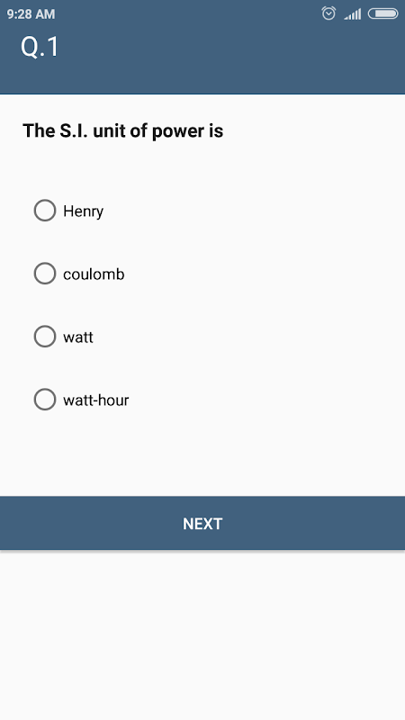 An MCQ Quiz Android Application for the subject of Current Electricity.