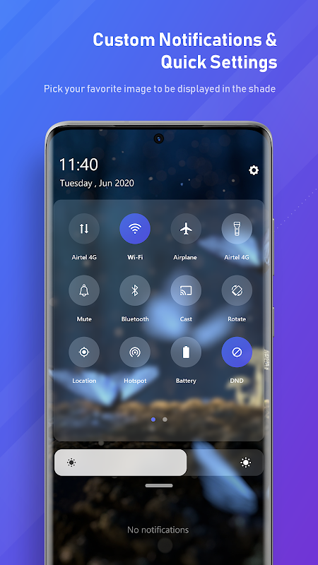 This app is designed to replace your phone's notification drop-down menu with a modern, fully customisable version. In addition to a new personalised experience, it also brings extra utilities that can make your life easier.