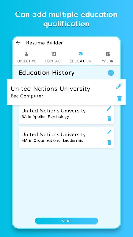 ہماری ایپ کو ہر سطح کے ملازمت کے متلاشیوں کی مدد کے لیے ڈیزائن کیا گیا ہے - داخلہ سطح کے امیدواروں سے لے کر تجربہ کار سابق فوجیوں تک۔ 8+ سے زیادہ پروفیشنل ریزیومے ٹیمپلیٹس کے ساتھ، ہمارا ریزیوم بنانے والا آپ کو حسب ضرورت ریزیومز بنانے میں مدد کرتا ہے جو آپ کی مہارت، تعلیم اور کامیابیوں کو نمایاں کرتا ہے۔