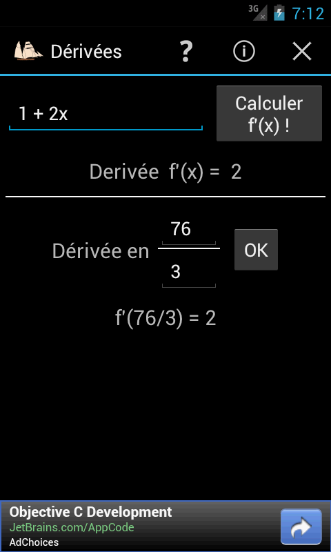 Dérivées est une application gratuite vous permettant de calculer facilement la dérivée d'une fonction polynomiale ainsi que la valeur de la pente en un point de cette fonction.