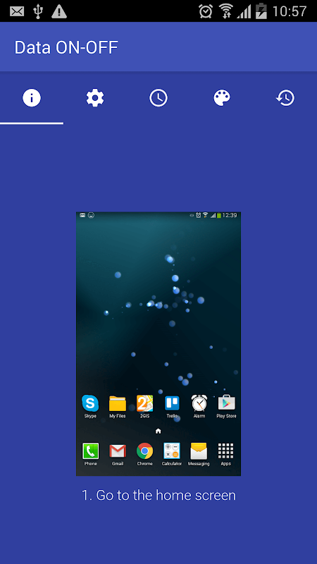 - if the mobile data setting changes (not changed by Data ON-OFF) when the phone is connected to a WiFi network, Data ON-OFF ignores the change and does not update the widget icon. This is an implementation choice, that saves some memory RAM.