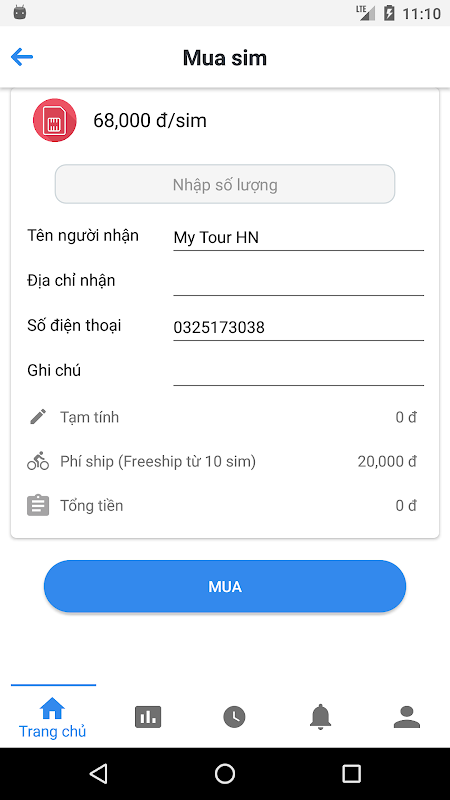 ♦ Thực hiện thao tác mua Sim, nhận, kích hoạt sim và sử dụng theo nhu cầu