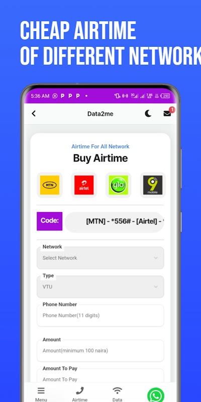 **سستی انٹرنیٹ**: اپنے Androids، کمپیوٹرز اور دیگر آلات کے لیے ان مہنگی سبسکرپشنز کو الوداع کریں۔ Data2me MTN، 9MOBILE، GLO، اور AIRTEL جیسے معروف نیٹ ورکس پر ناقابل یقین حد تک سستی ڈیٹا پلانز پیش کرتا ہے، جس میں ریگولر ریٹس پر 10-50% کی رعایت ہے۔ یہ منصوبے کم از کم 30 دن کی میعاد، فوری ڈیلیوری، اور چوبیس گھنٹے سروس کے ساتھ آتے ہیں، سوائے نیٹ ورک کی خرابی کے نایاب حالات کے۔
