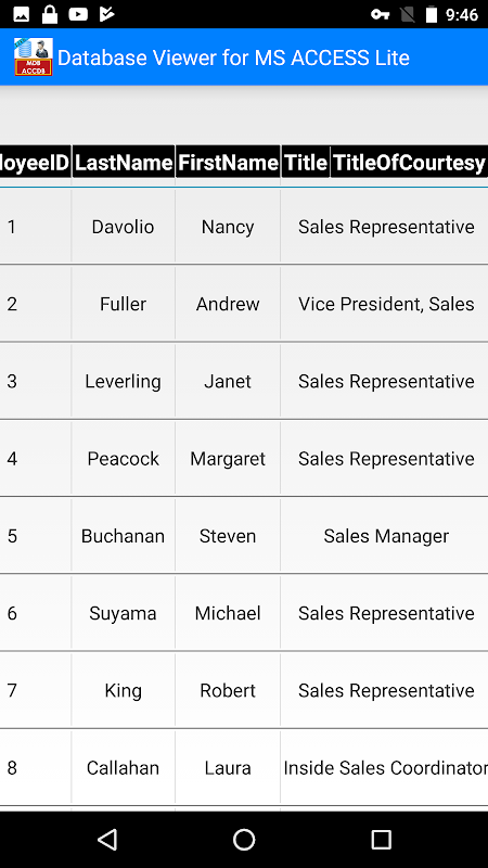 Open Microsoft Access database file on your Android Device, support ACCDB and MDB files. This is lite version of "ACCDB MDB Database Manager Pro", the Lite version only show the first 100 rows.