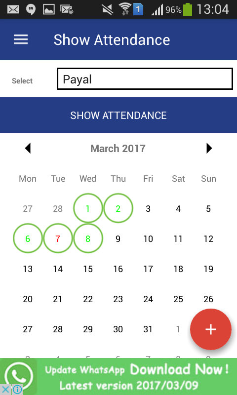 This application used to mark attendance.Showing attendance report in calendar