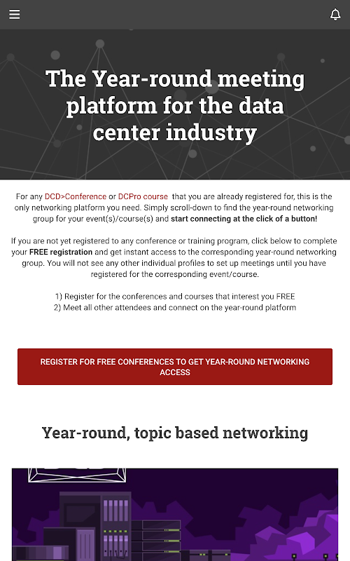 The DCD Connect networking app provides you with year-round access to network with peers from across the Data Center Industry.