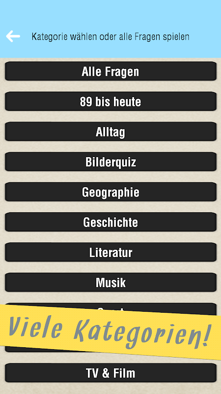 آپ GDR کو کتنی اچھی طرح جانتے ہیں؟ DDR کوئز میں اپنے علم کو دکھائیں اور بڑھائیں۔ آپ مختلف زمروں سے 500 سے زیادہ سوالات کی توقع کر سکتے ہیں، جیسے کہ روزمرہ کی زندگی، جغرافیہ، فلم اور ٹیلی ویژن، تاریخ، موسیقی، ٹیکنالوجی، کھیل اور بہت کچھ۔ تصویروں کے ساتھ 50 اضافی سوالات ہیں۔ یہ آپ پر منحصر ہے کہ آیا آپ چاہتے ہیں کہ آپ کے علم کی جانچ صرف مخصوص زمروں میں کی جائے یا آپ تمام سوالات کے رنگین آمیزہ جواب دینا پسند کریں گے۔ یہ ایپ آپ کو A فار فائل والیٹ سے لے کر سیلفین بیگ کے لیے Z تک بہت سی شرائط کی یاد دلائے گی۔ لیکن اس کے بارے میں زیادہ دیر تک مت سوچیں، کیونکہ ٹائمر بے رحمی سے ٹک کر رہا ہے۔