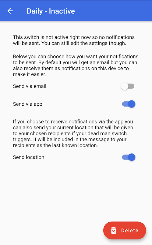 اپنی مرضی کے مطابق ڈیڈ مین سوئچز بنائیں جو آپ کے آلے پر براہ راست پش نوٹیفیکیشن بھیجیں تاکہ یہ چیک کیا جا سکے کہ آپ باقاعدہ وقفوں سے ٹھیک کر رہے ہیں۔ اگر آپ مطلوبہ نمبر پر جواب نہیں دیتے ہیں تو رابطوں کی فہرست کو خود بخود مطلع کر دیا جائے گا کہ آپ فون کال، ایس ایم ایس، یا ای میل کے ذریعے گم ہو گئے ہیں۔ یہاں تک کہ آپ انہیں ذاتی نوعیت کے پیغامات اور اپنا آخری معلوم مقام بھی بھیج سکتے ہیں۔