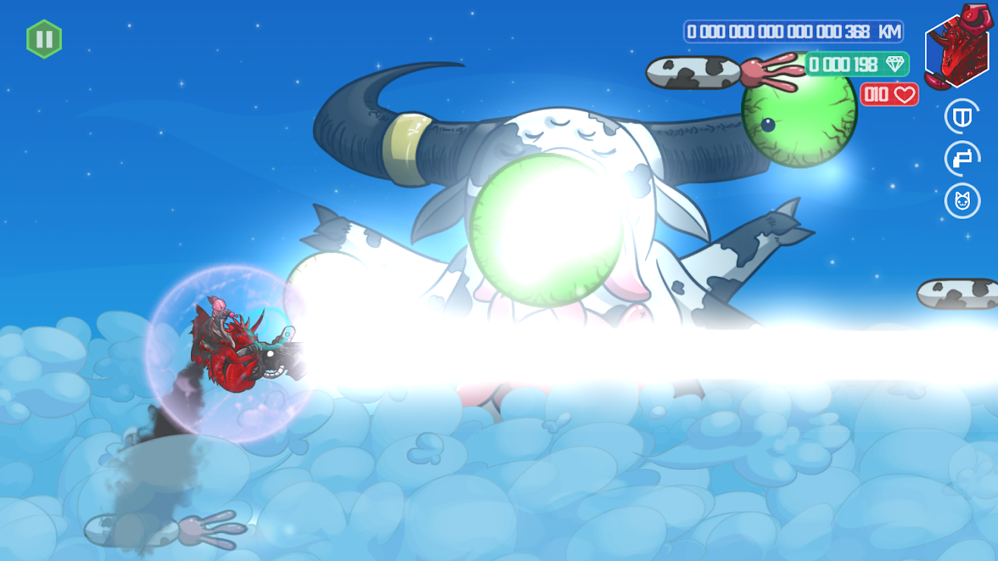 Take control of a deadly jetpack unicorn on mission of getting as far to the right as possible! Fly above the clouds, over mysterious unicorn planet overrun by evil sharks. Wield finest unicorn weapons, join cat rebellion and beat two evil overlords. Encounter and overcome obstacles on your way to the red zone, a zone where no jetpack unicorn have ever been before.