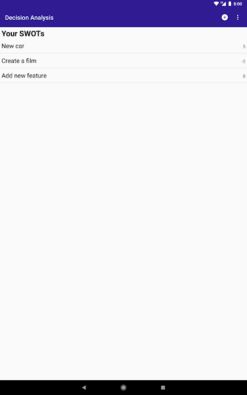 Decision Analysis: SWOT Analysis Tool is a fast, simple, and easy-to-use tool for making SWOT tables that help in decision making. This app is useful for decisions in business, lifestyle, organizing, or anything you may need.
