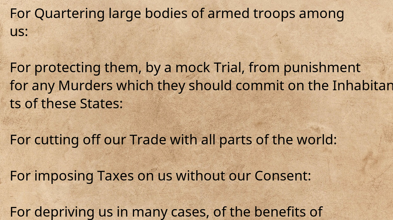 The Declaration of Independence states the principles on which our government, and our identity as Americans, are based. Unlike the other founding documents, the Declaration of Independence is not legally binding, but it is powerful. Abraham Lincoln called it “a rebuke and a stumbling-block to tyranny and oppression.” It continues to inspire people around the world to fight for freedom and equality.