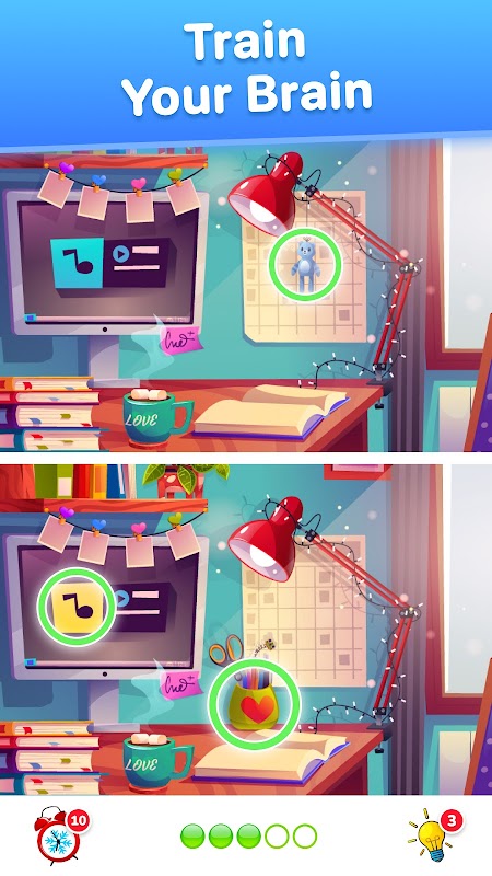 - دو تصویروں کا موازنہ کریں جو تقریبا ایک جیسی نظر آتی ہیں۔ اپنی تلاش شروع کریں اور پزل گیم میں 5 فرقوں کو تلاش کرنے کے لیے مختلف تفصیلات پر توجہ دیں۔