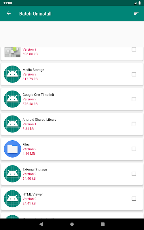 Check the apps that you want to uninstall, then tap the uninstall button.