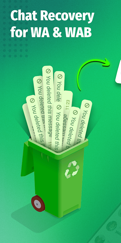 چیٹ کی بازیابی ایپ آپ کو کھوئی ہوئی فائلوں کو واپس حاصل کرنے کے لئے حذف شدہ فائل کی بازیابی میں مدد کرتی ہے۔ واٹس ایپ کے ڈیلیٹ شدہ میسجز کی ریکوری ایپ کے ساتھ آڈیو بازیافت کریں اور فائلوں کو ڈیلیٹ کریں۔ فون ڈیٹا ریکوری اطلاعات کی نگرانی کر سکتی ہے اور آف لائن چیٹ ایپ کے ذریعے حذف شدہ ڈیٹا اور ٹیکسٹ پیغامات کو بازیافت کر سکتی ہے۔ مفت میڈیا ریکوری واٹس ایپ بزنس کے ڈیلیٹ کیے گئے میسجز اور میڈیا فائلز کو ڈیٹا ریکوری کے ساتھ بازیافت کر سکتی ہے۔
