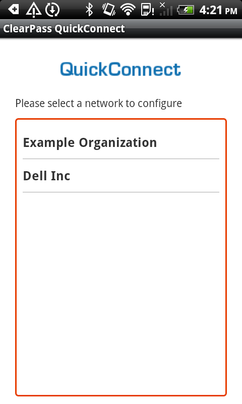 This application must be used in conjunction with Dell ClearPass QuickConnect server side software deployed in your organization. After installing the application navigate to the URL provided by your organization to start automatic configuration of your device.