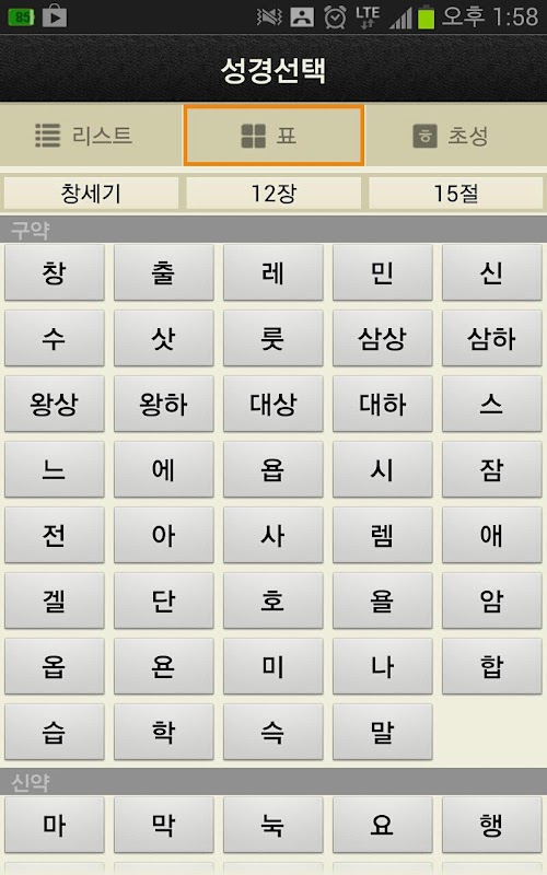 3. 성경찾기 기능에 표 검색과 초성 검색을 추가.