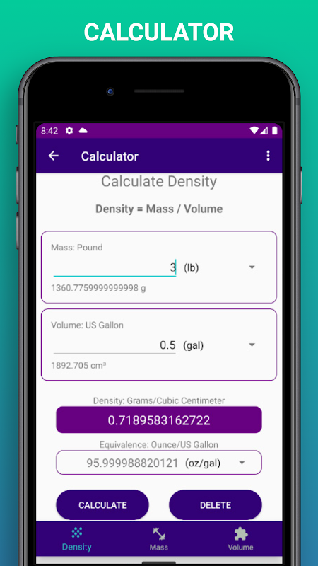 کثافت ، بڑے پیمانے پر اور حجم کے فارمولوں کی آسانی سے حساب لگائیں۔