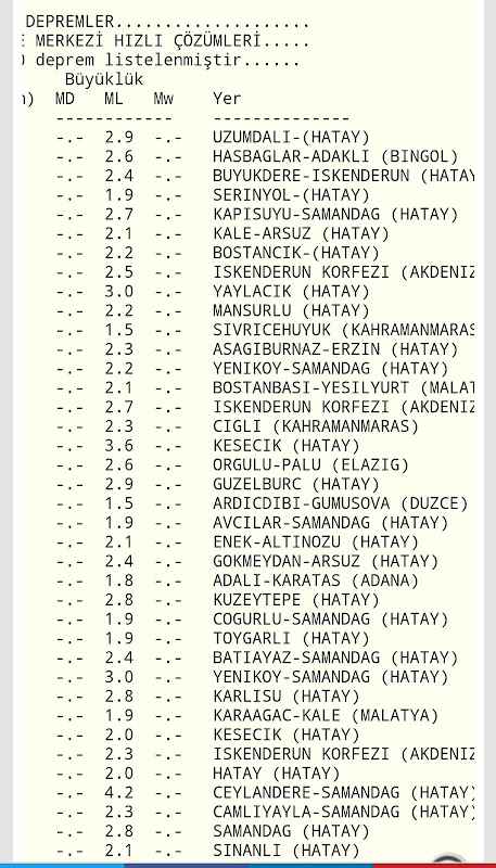 یہ ایپلی کیشن پورے ترکی میں زلزلوں کی پیروی کرنے کے لیے بنائی گئی تھی اور یہ ایک ایسی ایپلی کیشن ہے جو کنڈیلی آبزرویٹری زلزلہ ریسرچ انسٹی ٹیوٹ اور اے ایف اے ڈی کا ڈیٹا استعمال کرتی ہے۔