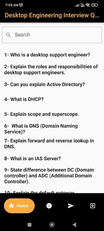 ڈیسک ٹاپ سپورٹ انجینئرنگ کے انٹرویو کے سوالات: ڈیسک ٹاپ سپورٹ انجینئرنگ میں خاص طور پر دلچسپی رکھنے والوں کے لیے، ہماری ایپ میں ڈیسک ٹاپ سپورٹ انجینئرنگ کے تصورات پر مرکوز 100+ سے زیادہ سوالات کے ساتھ ایک وقف شدہ سیکشن شامل ہے۔ اپنے علم کو گہرا کریں اور ڈیسک ٹاپ سپورٹ انجینئرنگ انٹرویو کے منظرناموں میں اپنے اعتماد کو بڑھائیں۔