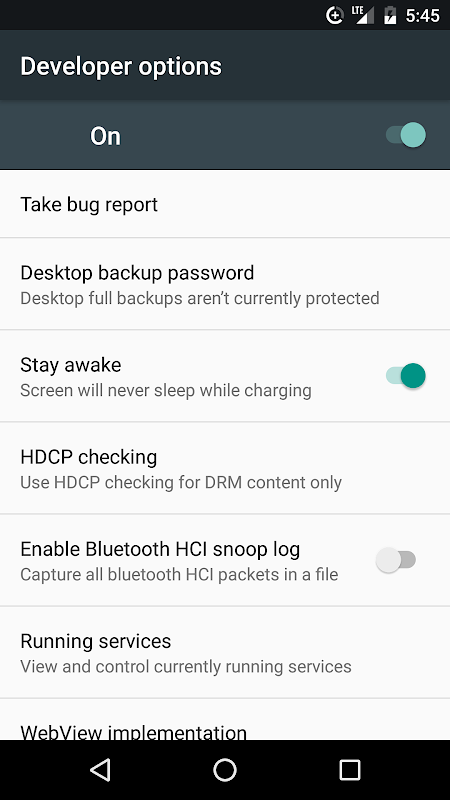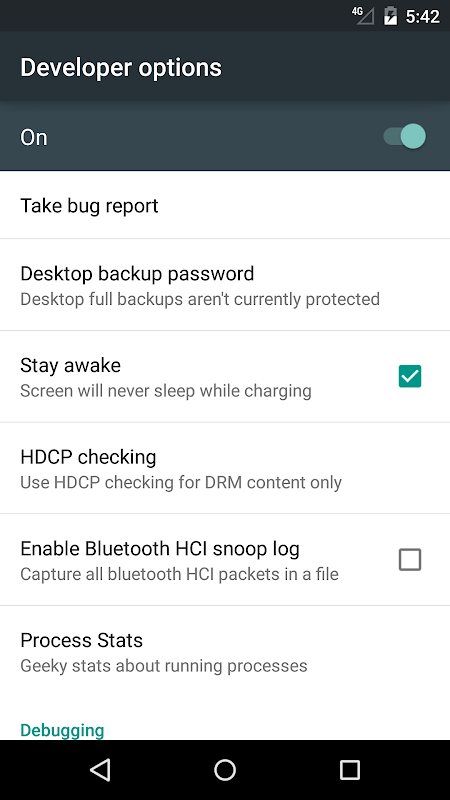 Set Android developer options with one click