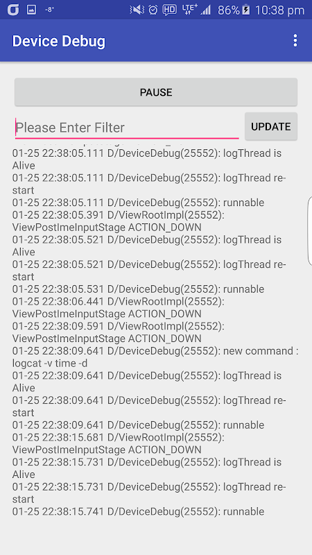 Debug your app on device by filtering logs, no PC connection needed to see logs