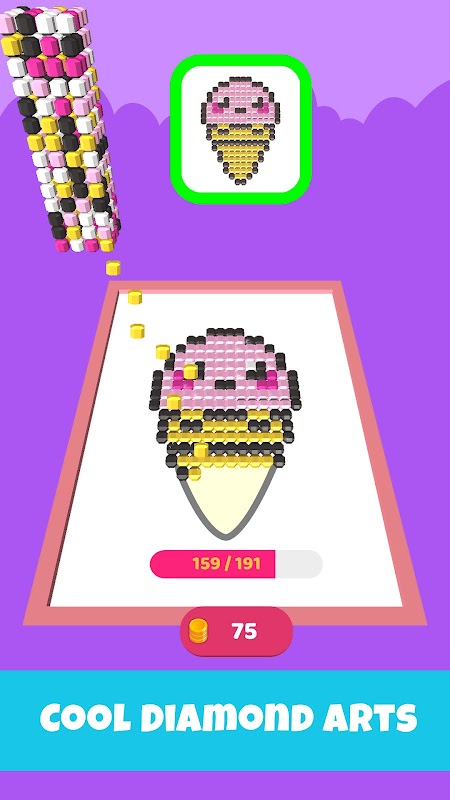 گیم میں ہیرے اکٹھا کریں اور ڈائمنڈ اسٹیک آرٹ بنائیں۔