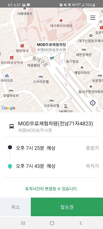대구 국제 미래모빌리티 엑스포(DIFA) 에 참여하는 ㈜씨엘의 온디맨드 모빌리티 서비스 무료체험차량 탑승을 위한 사용자앱이며,