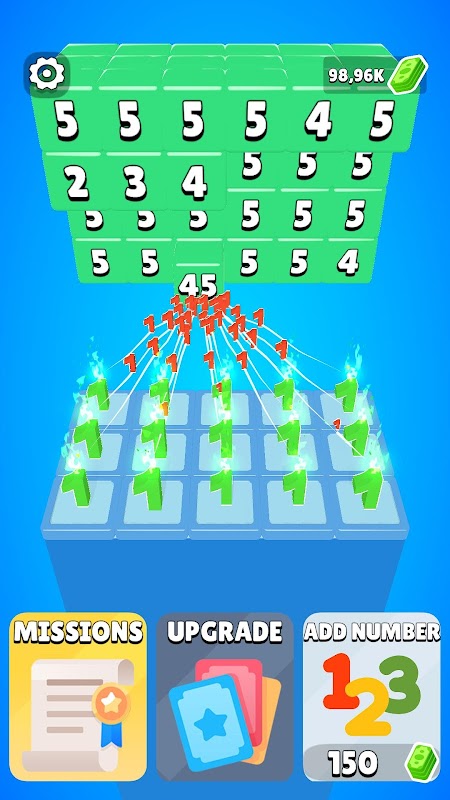 نمبر خریدیں اور یکجا کریں۔ یہ نمبر خود بخود اپنی قیمت تک پہنچ جاتے ہیں۔ آپ کے سامنے بلاکس لگے ہوئے ہیں۔ جیسے ہی یہ بلاکس ٹوٹ جاتے ہیں، آپ آمدنی فراہم کرتے ہیں۔ ان آمدنیوں کی بدولت، آپ اپ گریڈ پینل پر اپنے انکم ضرب اور شوٹنگ کی رفتار کو بہتر بنا سکتے ہیں۔