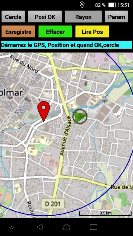 Cette application gratuite et sans pub a pour but de tracer un cercle de 1,2;5 ou 10 km à partir de la position de votre logement déterminé à l'aide du gps.