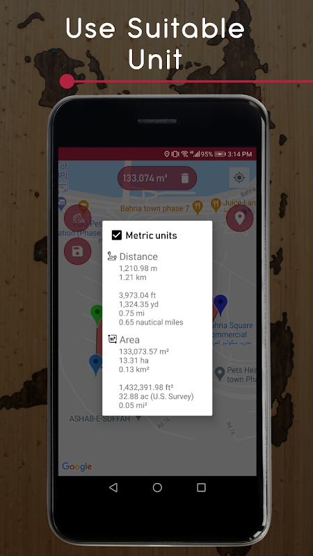 You can also calculate distance between two points by just dropping a mark at two different locations in sq m to sq ft. It will give you an exact calculation of distance.how much time you take from home to work, home to bus station or any other. measure distance through google maps you can run or walk by Maps. you can drive through this app and very easy to use you just need to put marks on different location and find exact distance between your selected points.