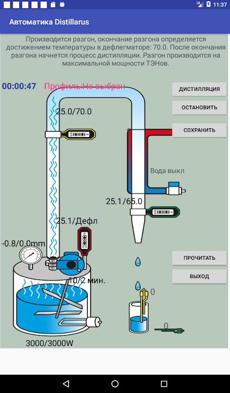 1) Реализовано отображение температуры 4-го и 5-го датчика температуры (при их наличии). 2) Исправлены ошибки работы нижнего узла отбора. 3) Реализован переход трехфазного контроллера в однофазный режим, начиная с заданной мощности. 4) Приложение выводит себя из сна путем беззвучных сообщений. Если сообщения не беззвучные, то отключите звук у канала "Channel HellDistiller NoSound". 5) Прошивка контроллера 5.038.