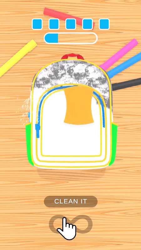 Use cleaning sponge, painting cans, stickers, badges and ears to customize your perfect backpack!