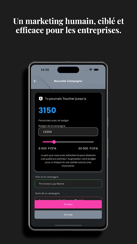 Djeli کے ساتھ، برکینا فاسو کے باشندوں کے ذریعے چلنے والی متعلقہ اور مستند مارکیٹنگ تک رسائی حاصل کریں۔ افراد اور سفیر آپ کے مواد کو اپنے سوشل نیٹ ورکس پر شیئر کرکے آپ کے پروموٹر بن جاتے ہیں، اس طرح ٹارگٹڈ اور موثر مرئیت پیدا ہوتی ہے۔