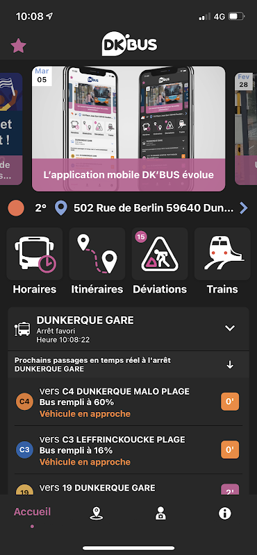 DK'BUS ڈنکرک کی شہری برادری کی ٹرانسپورٹ ایپلی کیشن ہے۔