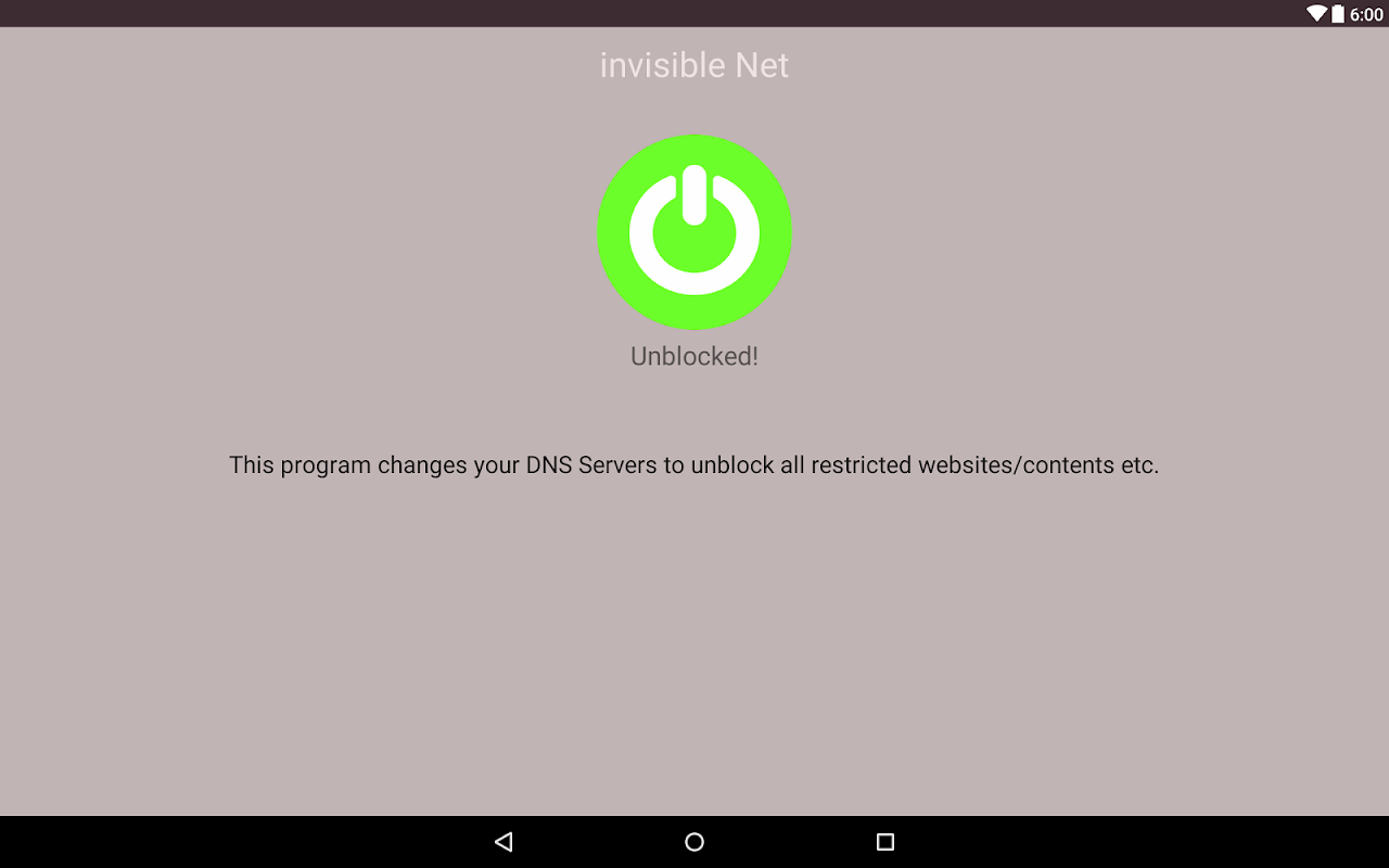 This is a simple DNS changer to unblock all restricted websites/contents and etc. It changes your DNS servers. It does not decrease your connection speed unlike free vpn services.