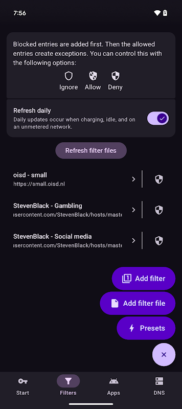 یہ ایک ہلکی پھلکی VPN سروس بنا کر کام کرتی ہے جو آپ کے انٹرنیٹ ٹریفک کو فلٹر کرتی ہے جیسا کہ آپ اپنا آلہ استعمال کرتے ہیں۔ اگر آپ کو کبھی بھی کسی سائٹ سے منسلک ہونے یا ایپ استعمال کرنے میں دشواری پیش آتی ہے، تو آپ ہمیشہ کسی ایپ کو فلٹرنگ سے مستثنیٰ کر سکتے ہیں یا کسی مخصوص میزبان نام کے لیے استثنا پیدا کر سکتے ہیں۔