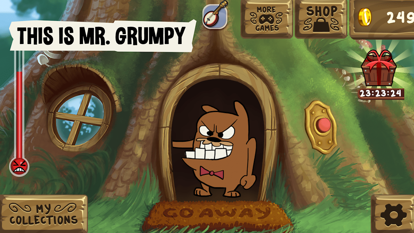 آپ کے مذاق کے کھیل کو اچھا بدلہ ملے گا۔ یہ مضحکہ خیز گیم کھیل کر آپ مسٹر گرمپی سے حیرت انگیز تحائف جمع کریں گے! ہر نل Annoy-o-Meter میں تھوڑا سا اضافہ کرتا ہے، جو اس شوبنکر گیم میں منفرد ہے۔ اور جب بھی آپ میٹر کی چوٹی پر پہنچتے ہیں، آپ کو ہمیشہ کے لیے رکھنے کے لیے ایک یادگار ملتا ہے! کیا آپ دروازہ کھٹکھٹا سکتے ہیں اور اس مضحکہ خیز کھیل میں چھپی ہوئی تمام اشیاء کو حاصل کر سکتے ہیں؟