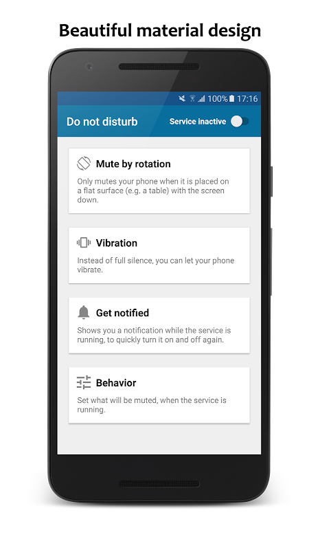 The core concept of this app is, that you can place your phone or tablet face down on a flat surface (e.g. table). The app will notice this movement and automatically mute itself.
