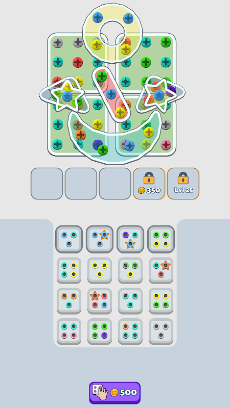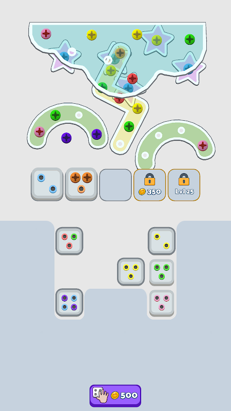 اشیاء کی مختلف قسمیں: پیچ مختلف شکلوں کو ایک ساتھ پکڑے ہوئے ہیں، ہر بار ایک تازہ اور تفریحی چیلنج فراہم کرتے ہیں۔ کامیاب ہونے کے لیے آپ کو تیز سوچ اور تیز ہاتھوں کی ضرورت ہوگی!